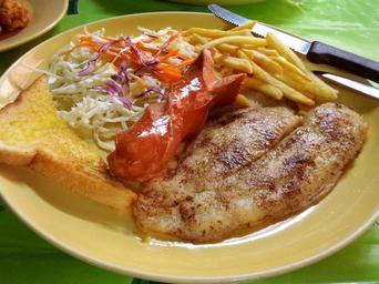 Keywords: fish food lunch fried meal breakfast yellow eat delicious dish sausage salad grilled steak