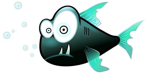 Keywords: fish funny cartoon odd surprised eyes swimming bubbles aquatic ugly piranha sharp teeth green
