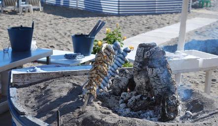 Keywords: fish grill charcoal beach sea summer holiday sand water sun wave delicious fire grilled fish