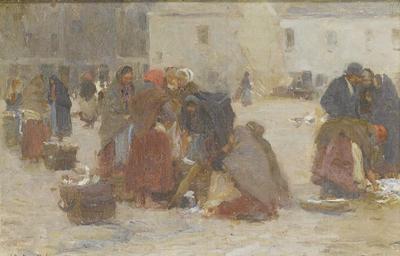 | Keywords: 'Fish Market, Galway' by Walter Frederick Osborne.jpg Artwork Creator Walter Osborne oil canvas cardboard cm 19 5 29 accession number object history Purchased by Robert Crewe-Milnes 1st Marquess of Crewe 1858-1945 credit line exhibition history Walter Osborne ~ lower left signature http //www sothebys com/en/auctions/ecatalogue/2015/duchess-roxburghe-l15317/lot 112 html Sotheby's London 27 - 28 May 2015 lot 112 PD-old-auto-1923 1903 DEFAULTSORT Osborne Walter; Genre; Sotheby's 2015 Walter Osborne Art of Galway Images from Sotheby's |
