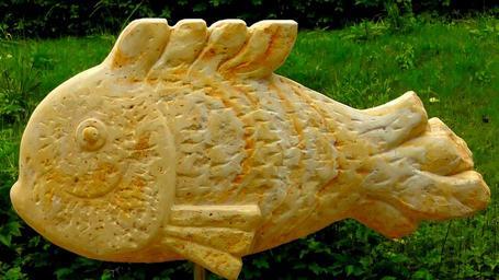 Keywords: fish sculpture park fig garden artwork carving painted art carved wood carving wood yellow holzfigur bemmalt figure