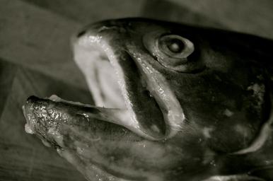 Keywords: fish slaughtered fished salmon black white death eye eat food network angel foot