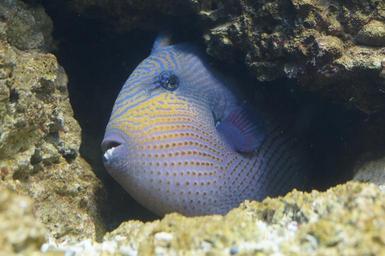 Keywords: fish triggerfish hidden crevice reef coral reef underwater aquarium sea meeresbewohner water sea animal underwater world exotic animal water creature colorful retired head