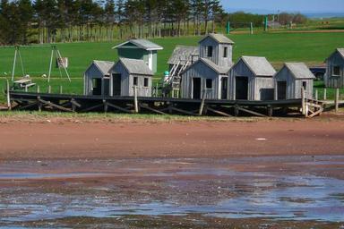 Keywords: fisher huts heritage buildings beach ebb low tide receded
