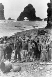 Keywords: FISHERMAN.jpg 1935 fishermen and women in Hanbok Korean traditional clothing on Liancourt Rocks PD-Japan-oldphoto Liancourt Rocks History of Japan History of Korea Natural arches 1935 Hanbok
