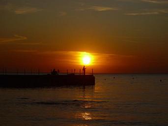Keywords: fisherman fishing jetty pier sunset beach silhouette shore rod male ocean sea