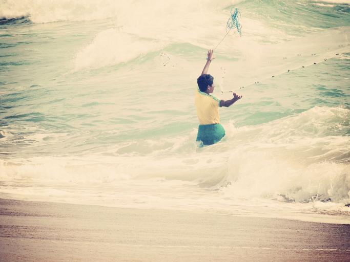 Keywords: fisherman sea fishing ocean water fish nature sky boat summer beach grunge