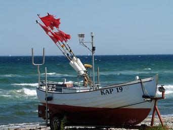 Keywords: fishing boat beach buoys baltic sea water