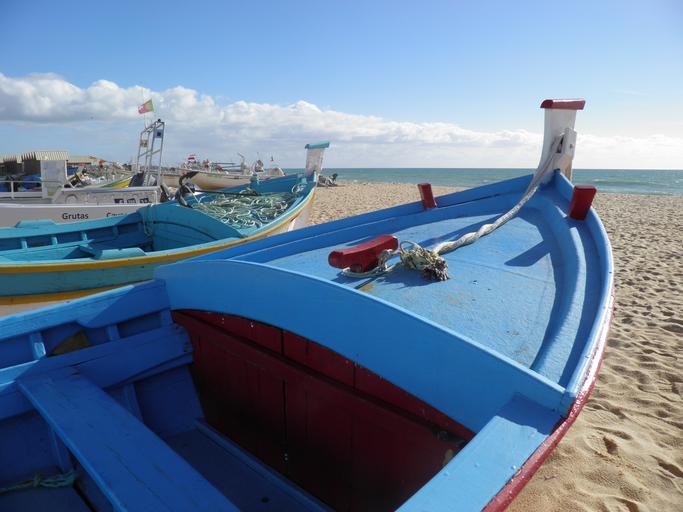 Keywords: fishing boat blue algarve summer fish coast beach boat fishing vessel portugal armacao de pera