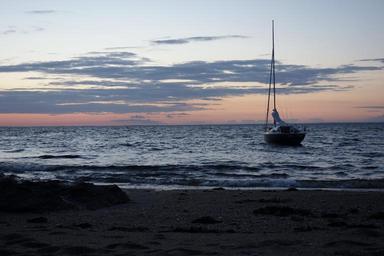 Keywords: fishing boat boot evening dusk twilight sunset sailing boat idyllic sky coast water sea maritime