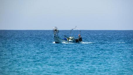 Keywords: fishing boat fisherman old man morning horizon cyprus