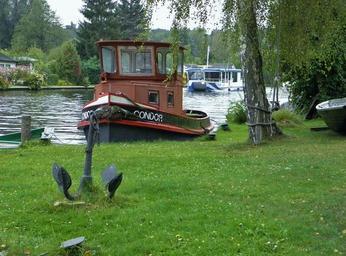 Keywords: fishing boat old ship berth water river spree berlin anchor bank