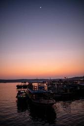 Keywords: fishing boats sunset wooden port