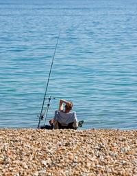 Keywords: fishing man beach relaxing sea ocean blue calm tranquil peaceful image photo
