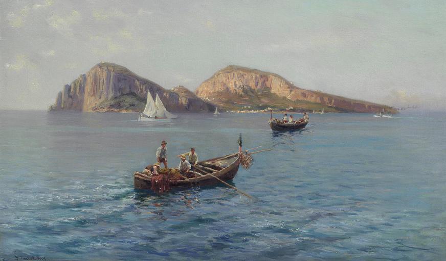 | Keywords: Fishing off the coast of Capri, by Bernardo Hay.jpg en Fishing off the coast of Capri oil on canvas 31 5 x 53 5cm signed b l Bernard Hay < 1935 http //www bonhams com/auctions/23540/lot/9/ Bonhams Creator Bernardo Hay other versions Custom license marker 2016 10 28 PD-old-70 Bernardo Hay |