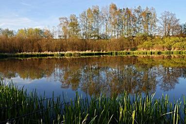 Keywords: fishing south bohemia ledenice surface pond bank water reeds water-level sunset reflection