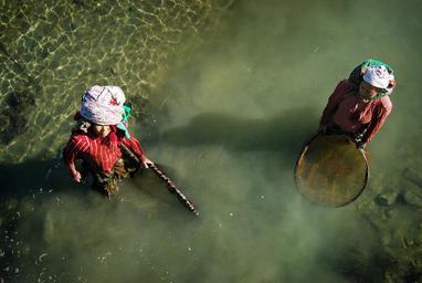 Keywords: fishing women nepal river network poverty water nature fresh water fish fish background scarf patience rocks hunger fisher