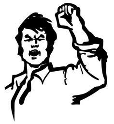 Keywords: fist raised union worker employee struggle factory excited gesture shouting slogans