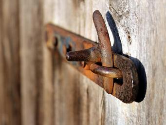 Keywords: fitting wooden door old stainless old wooden door weathered corrosion brown flake break up boards metal fitting