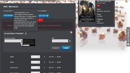 To increase profits for the management of the cinema, it would be helpful to have a link on the pop up box that the customer could access to buy a bundle of movie tickets at a discounted price.