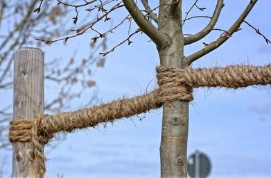 Keywords: fixing dew rope twisted ropes strand knitting knot connected rotated tree post garden woven connection detention secure leash