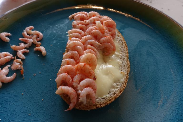 Keywords: fjord shrimp prawns cooked food dining seafood danish shrimps spring must delicacy speciality open-faced sandwiches french bread cooking imbricated shrimp in congestion