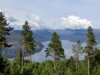 Keywords: fjord view trees clouds sky top nature landscape