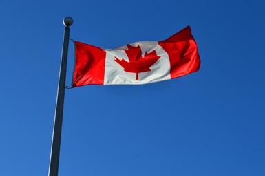 Keywords: flag canada canadian country symbol maple leaf sky blue national patriotism patriotic emblem banner nation pole