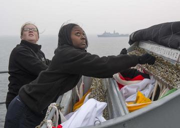 | Keywords: Flag hoisting drill 160313-N-GZ228-021.jpg en 160313-N-GZ228-021 EAST SEA March 13 2016 Quartermaster Seaman Kaitlynn Barton left and Quartermaster 2nd Class Kahzia Johnson-Baker prepare signal flags during a flag hoisting drill with amphibious transport dock ship USS New Orleans LPD 18 aboard amphibious assault ship USS Boxer LHD 4 Boxer is the flagship of the Boxer Amphibious Ready Group and is participating in Exercise Ssang Yong 16 Ssang Yong is a biennial combined amphibious exercise conducted by forward-deployed U S forces with the Republic of Korea Navy and Marine Corps Australian Army and Royal New Zealand Army Forces in order to strengthen our interoperability and working relationships across a wide range of military operations - from disaster relief to complex expeditionary operations U S Navy photo by Mass Communication Specialist 3rd Class Jesse Monford/Released <br>Unit Navy Media Content Services 2016-03-13 Jesse Monford https //www dvidshub net/image/2462833/flag-hoisting-drill 160313-N-GZ228-021 2016-03-15 00 03 EAST SEA USS BOXER AT SEA PD-USGov-Military-Navy USS Boxer LHD-4 USS New Orleans LPD-18 Images from DoD uploaded by Fæ |
