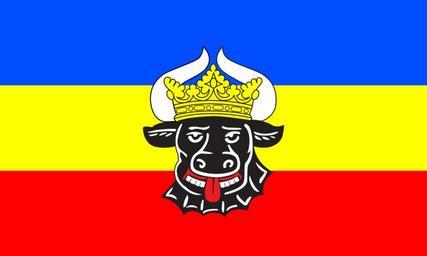 | Keywords: Flag of Mecklenburg (1992 proposal).svg 1992 proposal for a regional service flag of Mecklenburg inkscape Based on Image Coat of arms of Mecklenburg-Western Pomerania great svg; Reference http //www fotw net/flags/de-mv_ html pro 2006-10-03 Himasaram PD-Flag-Germany Flags of Mecklenburg SVG flags of Germany Flags with animals Flags with three horizontal stripes of blue red and yellow color combination Flags with crowns Proposed flags of Germany | ||||