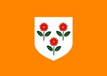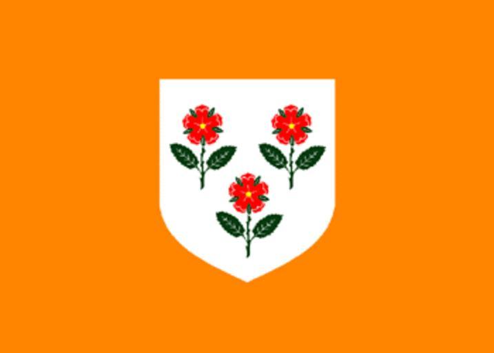 Keywords: Flag of Rose Island.png Bandera de Rose Island micronació Gene Poole other versions Gene Poole GFDL relicense Orange flags Flags with three roses Rhode Island Flags of micronations