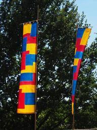 Keywords: flags colorful blow wind flutter blue red yellow danube fixed ulm