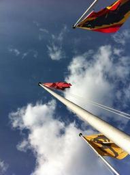 Keywords: flags flag poles switzerland bern sky clouds high height blue