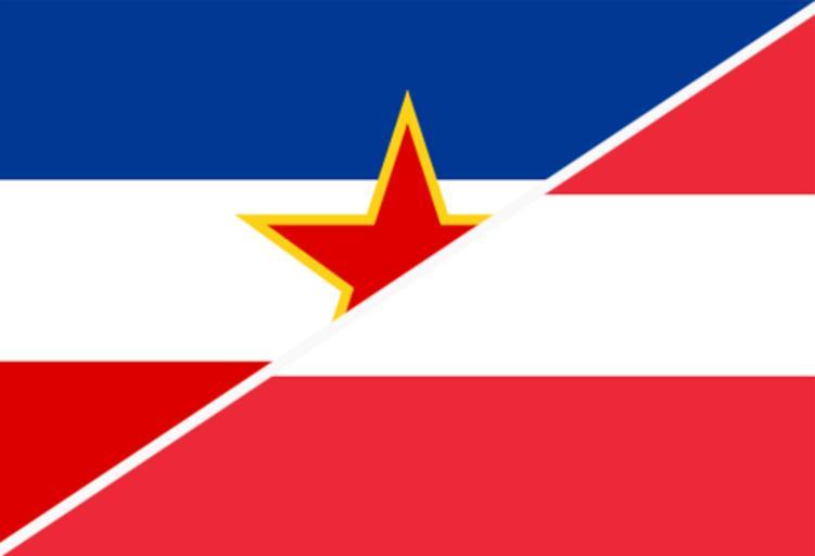 | Keywords: Flags of SFR Yugoslavia and Austria.png en Hybrid of flags of SFR Yugoslavia and Austria to flag combined diplomatic positions in these two countries e g for ambassadors of Malaysia 2014-02-04 17 44 01 own Civil ensign of SFR Yugoslavia svg see File Civil ensign of SFR Yugoslavia svg filehistory Flag of Austria svg see File Flag of Austria svg filehistory derivative work Tatewaki merged Tatewaki Civil ensign of SFR Yugoslavia svg merged Tatewaki Flag of Austria svg Release for the derivative work Original licenses of used works File Civil ensign of SFR Yugoslavia svg PD-simple File Civil ensign of SFR Yugoslavia svg PD-AustrianGov insignia Uploaded with UploadWizard Hybrids with the flag of Austria |