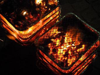 Keywords: flame fire out of control brand hot dangerous highly dangerous grill disposable grill barbecue charcoal burn carbon embers