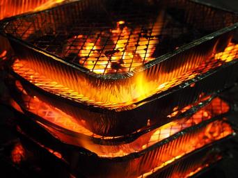 Keywords: flame fire out of control brand hot dangerous highly dangerous grill disposable grill barbecue charcoal burn carbon embers