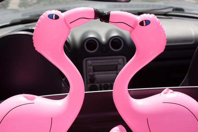 Keywords: flamingo beaks inflatable pink romantic lovers heart auto cabriolet holiday vacation beginning travel decorative animal bird humor funny toys cheerful ventilation autoradio summer sun