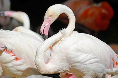 Keywords: flamingo pink flamingo water bird pink plumage bird bill close up vertebrate animal portrait phoenicopteriform color