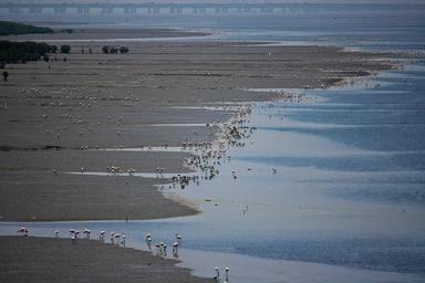 Keywords: flamingos bird feeding marsh creek tidal fauna