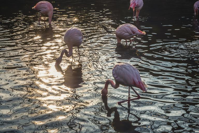 Keywords: flamingos flamingoes bird wading phoenicopterus water animal pink nature wild wildlife feather pond natural group