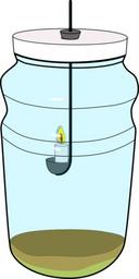 Keywords: Flaschengarten mit Kerze ohne Pflanzen.svg de Experimente mit einem Flaschengarten Untersuchung der Experimente von PRIESTLEY 2016-11-16 own A Spielhoff other versions cc-zero Photosynthesis Bottle garden