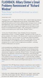 | Keywords: FLASHBACK - Hillary Clinton's Email Problems Reminiscent of 'Richard Windsor'.jpg FLASHBACK Hillary Clinton s Email Problems Reminiscent of Richard Windsor Richard Windsor was former EPA Administrator Lisa Jackson s secret email alias Tuesday March 3 2015 Washington DC Today Sen David Vitter R-La made the following statement regarding recent reports alleging that former Secretary of State Hillary Clinton used a private email account to conduct official business during her tenure with the State Department which would violate the Federal Records Act Vitter was the driving force behind the investigation that helped uncover the extent to which former Environmental Protection Agency EPA Administrator Lisa Jackson s utilized a secret email account under the alias Richard Windsor At this point President Obama s claim of leading the most transparent Administration in history is certainly laughable especially now that we know two previous members of his Cabinet EPA Administrator Lisa Jackson and Secretary of State Hillary Clinton went out of their way to hide their emails from federal records laws and the American public said Vitter It should go without saying that the President s very top officials should not be leading efforts to avoid transparency laws in order to avoid oversight and accountability including Freedom of Information Act requests As the immediate past top Republican on the Senate Environment and Public Works Committee Vitter investigated inappropriate record-keeping practices within the Obama Administration stemming from concerns over former EPA Administrator Lisa Jackson s email alias Richard Windsor During the nomination process for Gina McCarthy to become EPA Administrator Vitter and the EPW Republicans made five transparency requests one of which was for the EPA to issue a new guidance to ensure that all official business is conducted solely on official government email accounts and that the Agency would respond in full to Freedom of Information Act FOIA requests and Congressional inquiries Click here to read more In September 2013 EPW Republicans released a comprehensive report entitled A Call for Sunshine EPA's FOIA and Federal Records Failures Uncovered which provides a detailed accounting of EPA's inappropriate email practices Click here to read more Earlier this week a federal judge said the EPA does not respect requests made under FOIA and the Agency has been offensively unapologetic particularly pursuant to the Richard Windsor emails Click here to read more http //www vitter senate gov/newsroom/press/flashback-hillary-clintons-email-problems-reminiscent-of-richard-windsor 2015-03-03 United States Senator David Vitter s Flashback - Hillary Clinton's Email Problems Reminiscent of 'Richard Windsor' at Wikisource Hillary Rodham Clinton in 2015 Hillary Rodham Clinton email use as United States Secretary of State Hillary Rodham Clinton-related documents David Vitter PD-USGov |