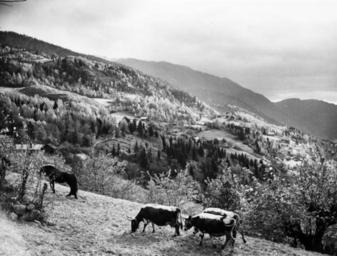 Keywords: dyr fjell hester husdyr kyr landskap seljord telemark norway nor blackandwhite monochrome outdoor mountainside landscape black and white Tre kyr av rasen telemarksfe og en hest på beite i Flatdal. Fjellandskap i bakgrunnen. Tre kyr av rasen telemarksfe og en hest på beite i Flatdal. Fjellandskap i bakgrunnen.