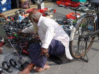 Keywords: flea market market antiques junks vintage selling souvenir retro collection people objects equipments outdoor spare parts bicycle