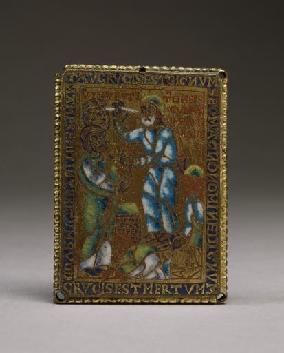 | Keywords: Flemish - Ezekiel's Vision of the Sign "Tau" (Ezekiel IX -2-7) - Walters 44616.jpg This plaque was once part of an altar cross on which a series of images illustrated Old Testament events such as Abraham's sacrifice of Isaac foreshadowing the Crucifixion It depicts a vision of the prophet Ezekiel who saw all the inhabitants of Jerusalem except for those righteous ones whose foreheads had been marked with a sign punished by death for their sins According to the Latin text of the Bible used during the Middle Ages this sign was T-shaped middle Other date century 12 Medieval champlevé enamel copper gilt cm 7 5 5 5 accession number 44 616 13797 Chigi Collection Rome Ettore Sestieri Rome by purchase Joseph Brummer New York by purchase Sale Parke-Bernet New York May 14 1949 no 709 Walters Art Museum May 14 1949 by purchase Museum purchase 1949 Vir vestit us lineis cum at ra mentario A man clothed with linen with a writer's inkhorn Non signati pereu n t Those who do not bear the sign T perish Tau crucis est signum sed magno nomine dignum / Nam premit interitum quod crucis est mertum T is the symbol of the cross and as such worthy of great name / Since it conquers death a virtue that belongs to the cross Realms of Faith Medieval and Byzantine Art from the Walters Art Museum Frist Center for the Visual Arts Nashville 2001-2002 Realms of Faith Medieval and Byzantine Art from the Walters Art Museum Frist Center for the Visual Arts Nashville 2002-2005 Realms of Faith Medieval and Byzantine Art from the Walters Art Museum Museum of Biblical Art New York; Colby College Museum of Art Waterville; Joslyn Art Museum Omaha 2008-2009 place of origin Mosan Region Walters Art Museum license Medieval metalwork in the Walters Art Museum Flemish art in the Walters Art Museum Media contributed by the Walters Art Museum needs category review Rhine-Meuse champlevé |