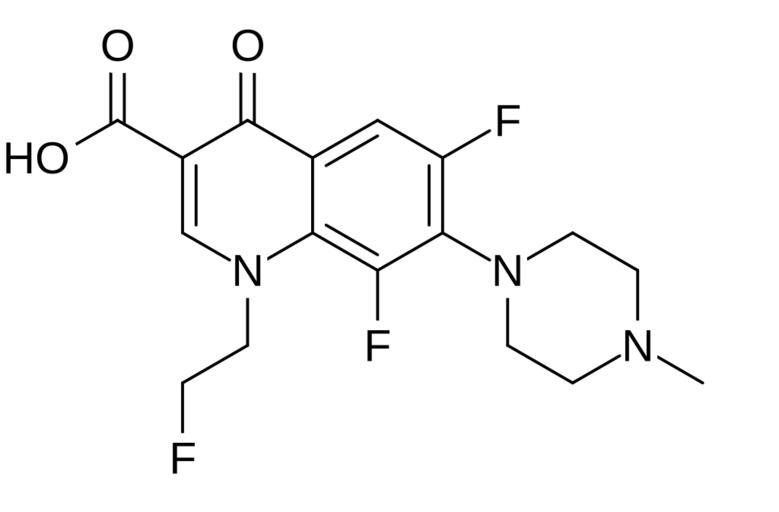 Keywords: Fleroxacin.svg Chemical structure of fleroxacin Own 13 56 29 January 2014 UTC Ed Edgar181 Fluoroquinolone antibiotics Piperazines