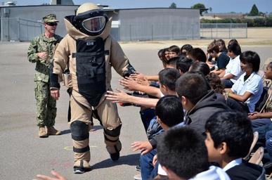 | Keywords: Flickr - Official U.S. Navy Imagery - Sailor in a bomb suit greets children..jpg IMPERIAL BEACH Calif Sept 21 2012 A Sailor assigned to Explosive Ordnance Disposal Mobile Unit EODMU 11 greets students at Mar Vista Middle School while wearing a bomb suit during a community service project Sailors assigned to EODMU 11 Explosive Ordnance Disposal Expeditionary Support Unit EODESU 1 and Explosive Ordnance Disposal Group EODGRU 1 conducted the project to develop relations with the school and increase knowledge about opportunities within the Navy Expeditionary community U S Navy photo by Mass Communication Specialist 2nd Class Joshua Scott/Released 120921-N-FN215-217 Join the conversation http //www facebook com/USNavy www facebook com/USNavy http //www twitter com/USNavy www twitter com/USNavy navylive dodlive mil http //www flickr com/photos/usnavy/8026429160/ Sailor in a bomb suit greets children 2012-09-26 09 00 http //www flickr com/people/56594044 N06 Official Navy Page from United States of America Mass Communication Specialist 2nd Class Joshua Scott/U S Navy U S Navy photo PD-USGov-Military-Navy Official U S Navy Imagery http //flickr com/photos/56594044 N06/8026429160 2012-11-12 07 57 51 cc-by-2 0 Images from United States Navy to check United States Navy images Explosive Ordnance Disposal Mobile Unit 11 |