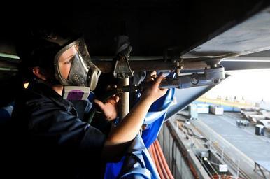 | Keywords: Flickr - Official U.S. Navy Imagery - Sailor removes paint aboard ship..jpg NAVAL BASE KITSAP-BREMERTON Wash Sept 6 2012 Seaman Chelsea Blagg from Grayson Ga removes deteriorated paint and rust with a disc sander on a weather deck aboard the aircraft carrier USS Ronald Reagan CVN 76 Ronald Reagan is homeported in Bremerton Wash while undergoing a docked planned incremental availability maintenance period at Puget Sound Naval Shipyard Intermediate Maintenance Activity U S Navy photo by Mass Communication Specialist Seaman Nolan Kahn/Released 120906-N-NK7140-026 Join the conversation http //www facebook com/USNavy www facebook com/USNavy http //www twitter com/USNavy www twitter com/USNavy navylive dodlive mil http //www flickr com/photos/usnavy/7979369054/ Sailor removes paint aboard ship 2012-09-07 04 41 http //www flickr com/people/56594044 N06 Official Navy Page from United States of America MCSN Nolan Kahn/U S Navy U S Navy photo PD-USGov-Military-Navy Official U S Navy Imagery http //flickr com/photos/56594044 N06/7979369054 2012-11-12 09 04 57 cc-by-2 0 Images from United States Navy to check United States Navy images |