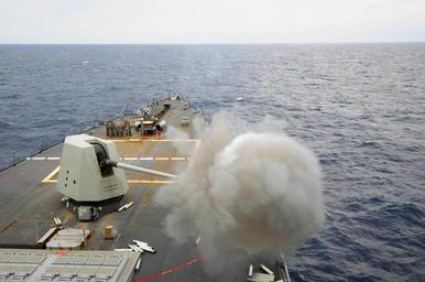 | Keywords: Flickr - Official U.S. Navy Imagery - USS Mustin fires its 5-inch gun..jpg PACIFIC OCEAN Nov 4 2012 The MK-45 5-inch/62 caliber lightweight gun of the guided-missile destroyer USS Mustin DDG 89 is fired at a shore-based target during Mustin ™s Naval Surface Fire Support NSFS recertification NSFS is an exercise in which destroyers and cruisers train to fire deck guns ashore in support of ground troops U S Navy photo by Mass Communication Specialist 2nd Class Devon Dow/Released 121104-N-MU720-223 Join the conversation http //www facebook com/USNavy www facebook com/USNavy http //www twitter com/USNavy www twitter com/USNavy http //navylive dodlive mil navylive dodlive mil http //www flickr com/photos/usnavy/8157933251/ USS Mustin fires its 5-inch gun 2012-11-04 15 32 http //www flickr com/people/56594044 N06 Official Navy Page from United States of America MC2 Devon Dow/U S Navy U S Navy photo PD-USGov-Military-Navy Official U S Navy Imagery http //flickr com/photos/56594044 N06/8157933251 2012-11-12 00 21 29 cc-by-2 0 Images from United States Navy to check |