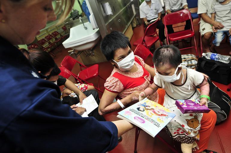 | Keywords: Flickr - Official U.S. Navy Imagery - Pacific Partnership 2012 visits Vietnam. (5).jpg VINH CITY Vietnam July 11 2012 Cmdr Danielle Taysom hands a coloring book to a three-year-old Vietnamese girl with third-degree burns during a patient in-flow aboard the Military Sealift Command hospital ship USNS Mercy T-AH 19 as part of Pacific Partnership 2012 Vietnam is the third stop for Pacific Partnership 2012 Now in its seventh year Pacific Partnership is a U S Pacific Fleet humanitarian and civic assistance mission U S military host and partner nations non-governmental organizations and international organizations designed to build stronger relationships and disaster response capabilities in the Asia-Pacific region U S Navy photo by Kristopher Radder/Released 120711-O-ZZ999-009 Join the conversation http //www facebook com/USNavy www facebook com/USNavy http //www twitter com/USNavy www twitter com/USNavy http //navylive dodlive mil navylive dodlive mil http //www flickr com/photos/usnavy/7582340570/ Pacific Partnership 2012 visits Vietnam 2012-07-10 11 26 http //www flickr com/people/56594044 N06 Official Navy Page from United States of America KRISTOPHER RADDER/U S Navy U S Navy photo PD-USGov-Military-Navy Official U S Navy Imagery http //flickr com/photos/56594044 N06/7582340570 2012-11-12 20 08 20 cc-by-2 0 Images from United States Navy to check |